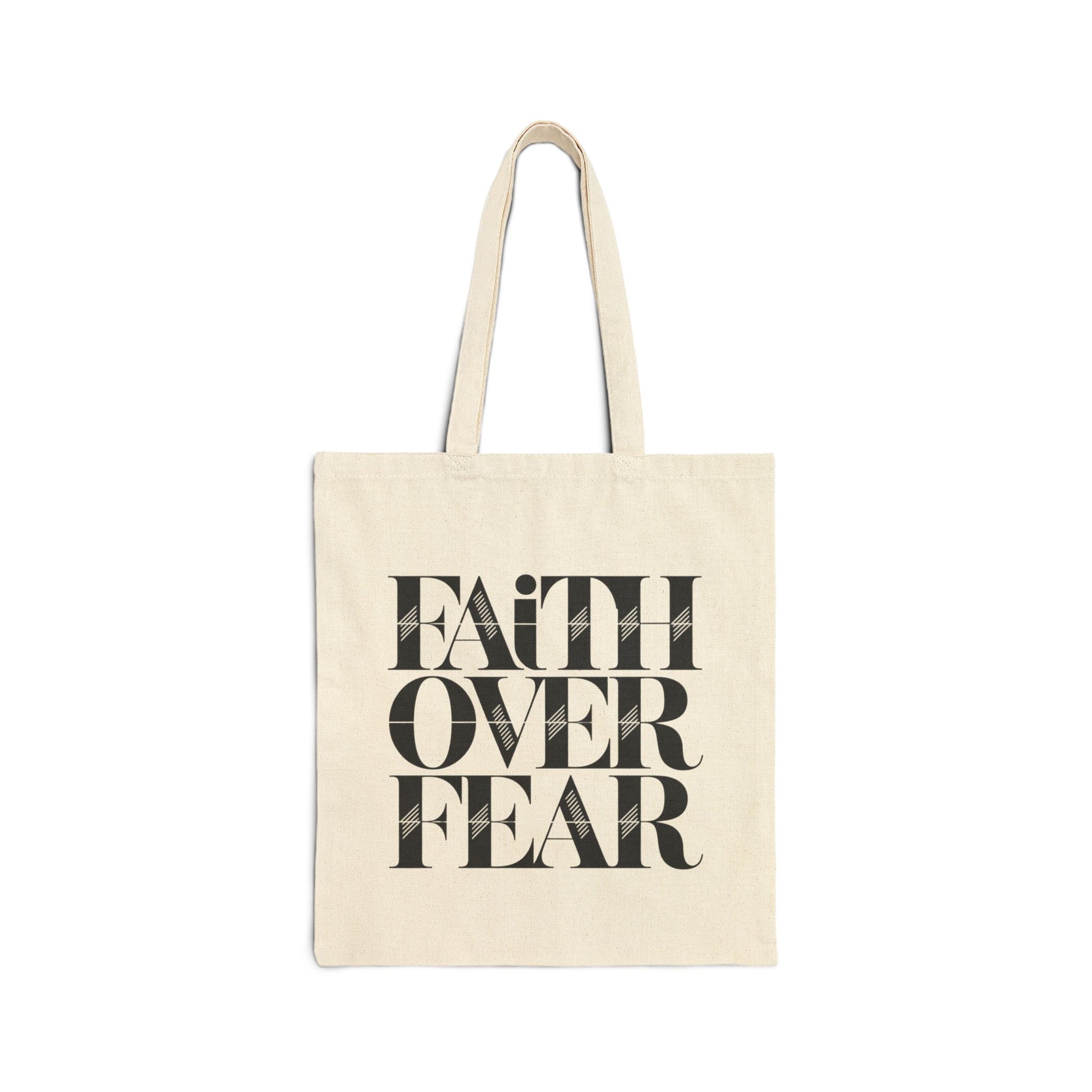 Lightweight but rugged, this cotton canvas tote carries more than just your daily essentials β it carries a quiet declaration. The bold βFaith over Fearβ graphic sits centered on a natural or black canvas, its clean typography and starburst background cutting through noise with gentle confidence. Long, reinforced handles rest comfortably on shoulder or arm. The flat-corner construction keeps the interior neat so books, groceries, or devotional items sit squarely without slouching. Built from heavy 12 oz cotton canvas, it feels substantial and lived-in from the first use.