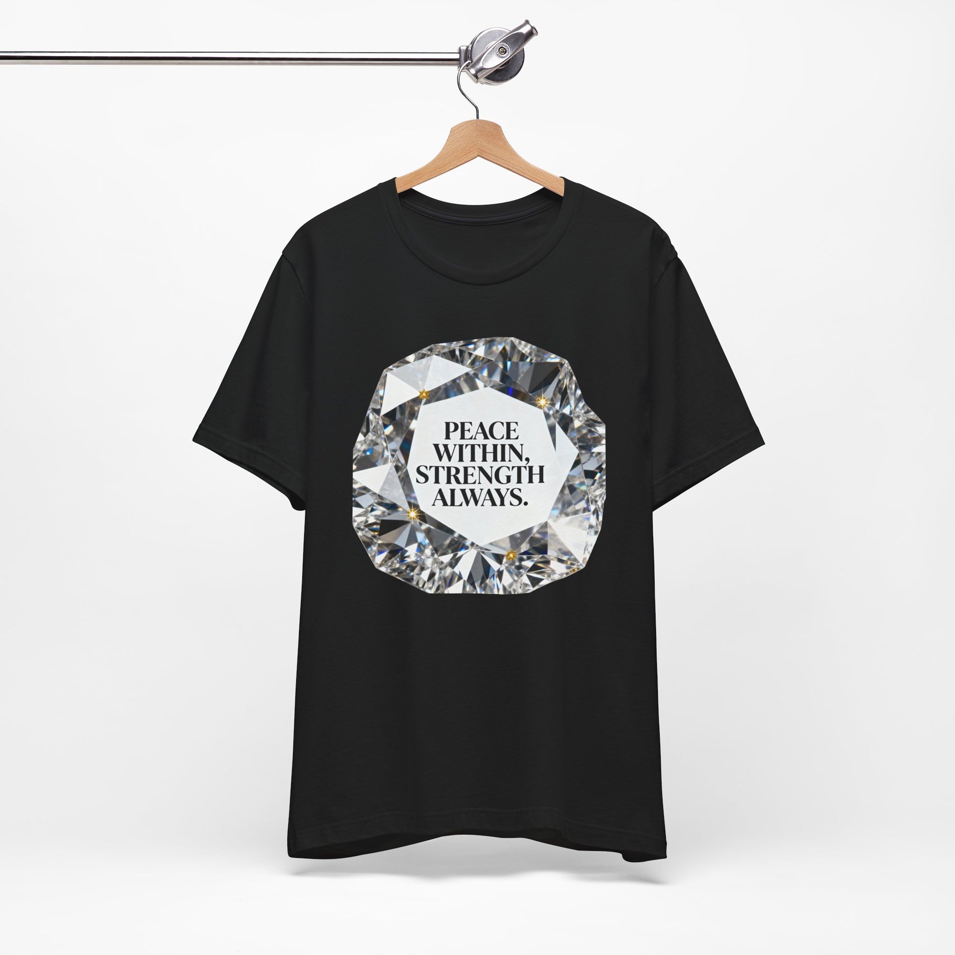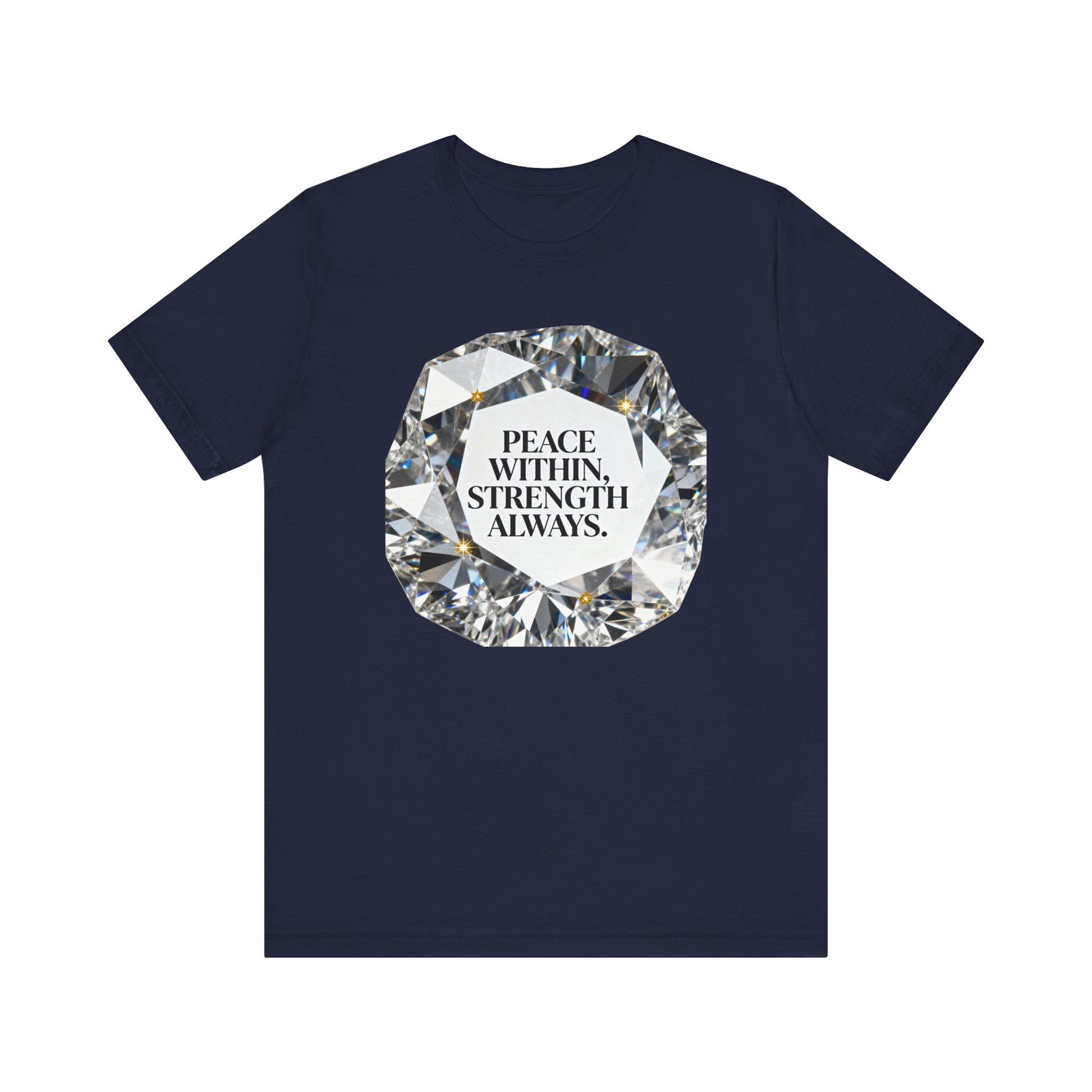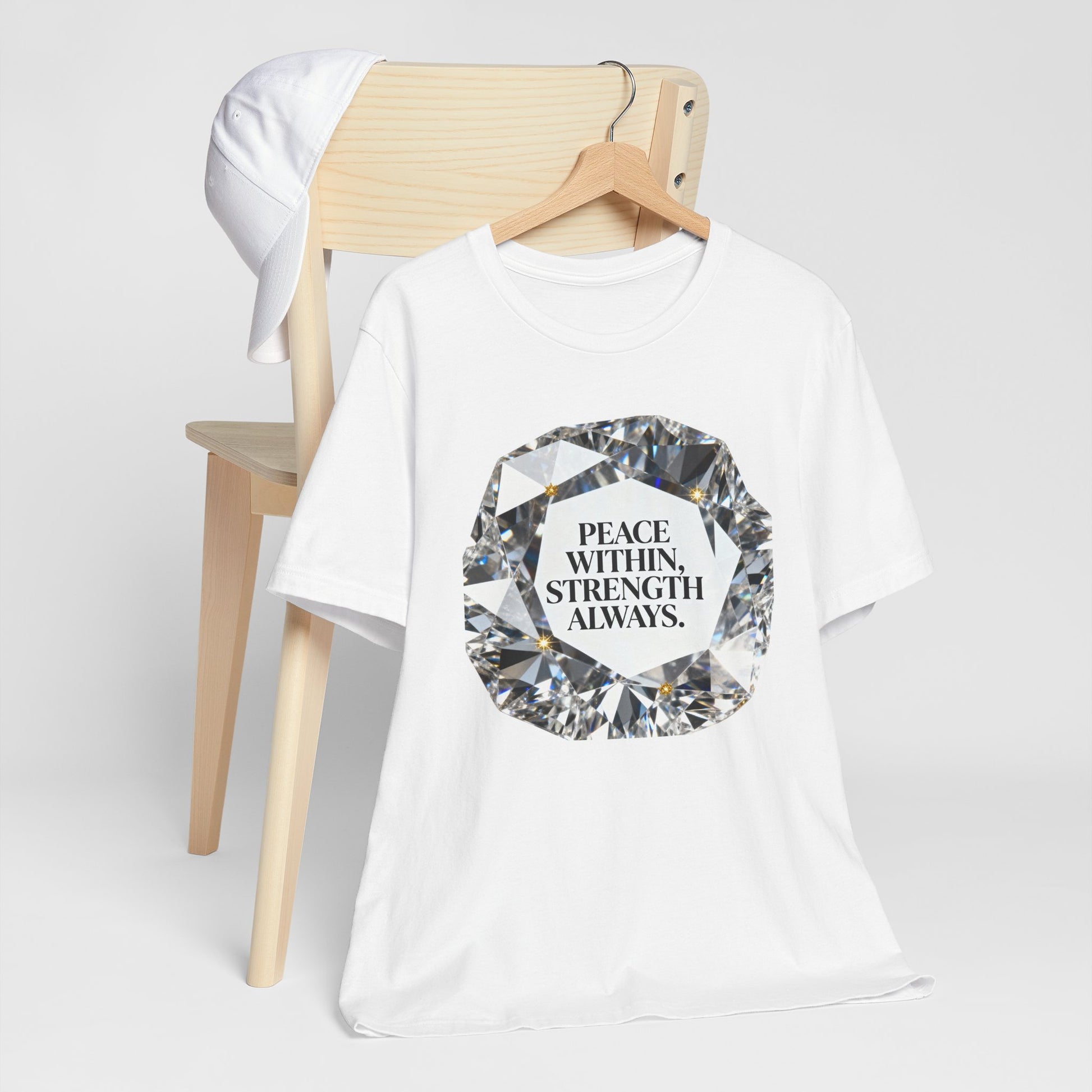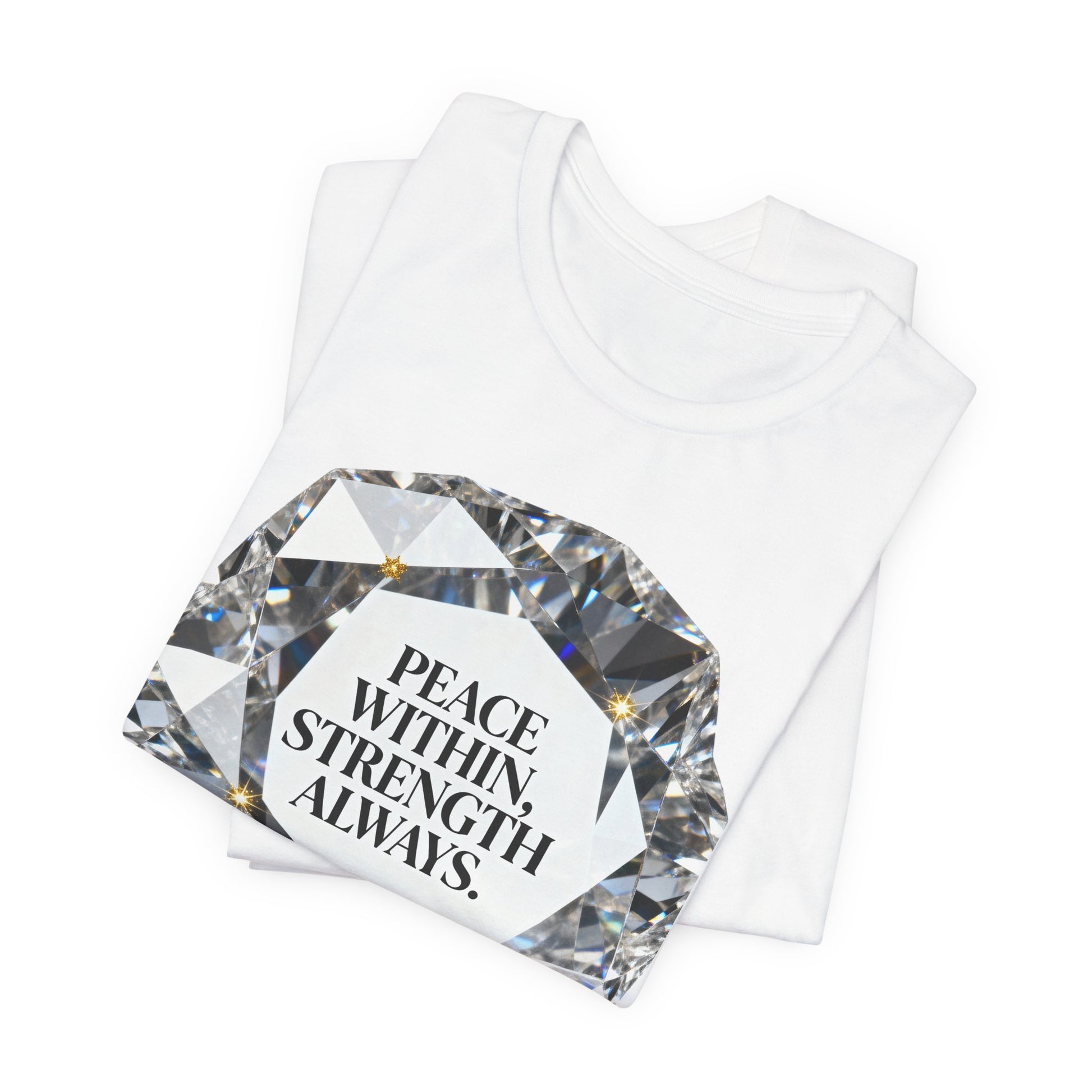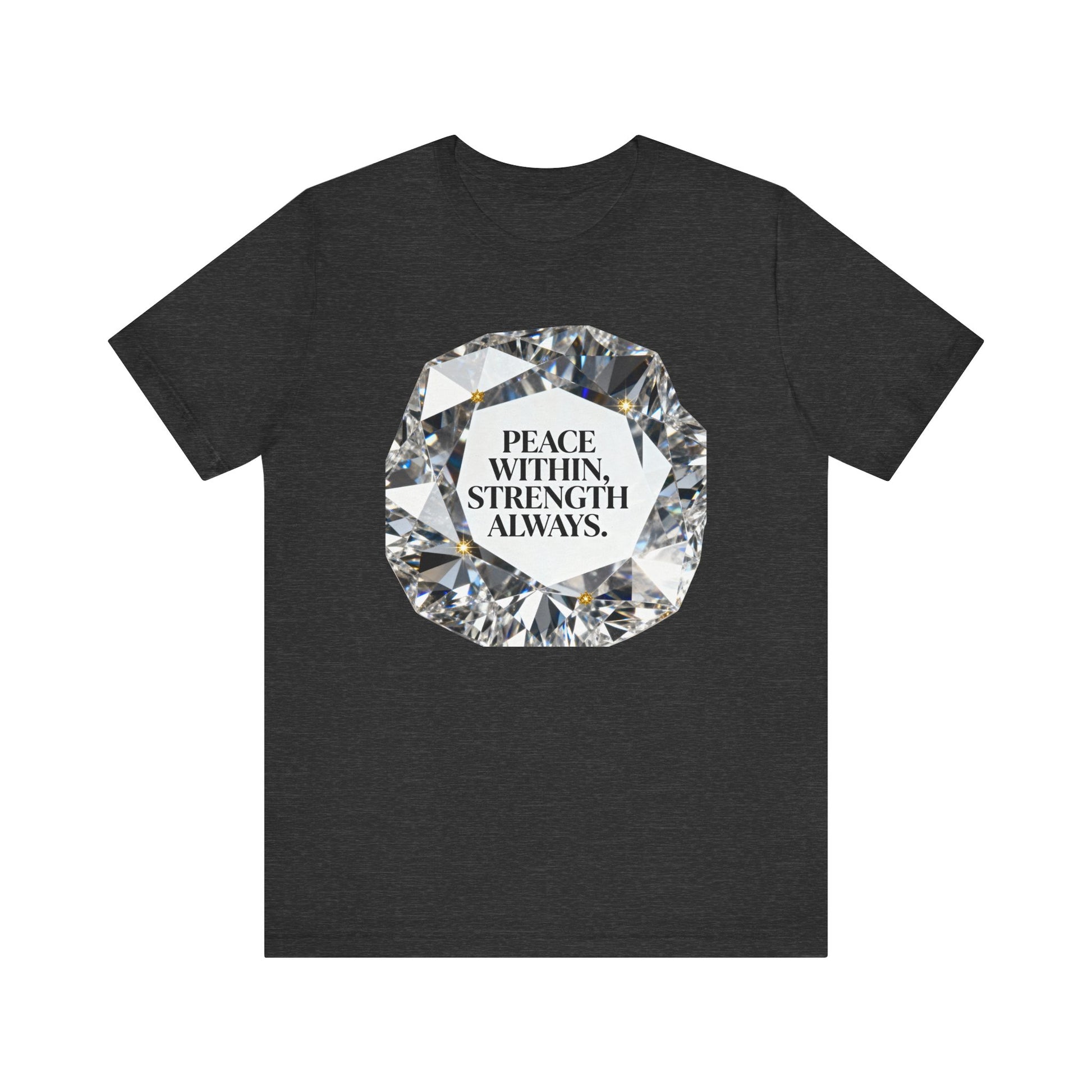 Elevate your casual wardrobe with this Unisex Jersey Short Sleeve Tee, featuring an inspiring graphic that encourages peace and strength. This lightweight tee is perfect for any occasion, whether you're lounging at home, meeting friends for coffee, or heading out on a casual date night. Its breathable fabric makes it ideal for summer outings or layering in cooler weather. The classic crew neckline and relaxed fit offer versatility, allowing you to pair it easily with jeans, shorts, or skirts. This tee makes a thoughtful gift for friends or family who appreciate motivational messages and stylish comfort, especially during celebrations, birthdays, or just as a pick-me-up gift. Perfect for anyone looking to spread positivity and wear inspiration daily.