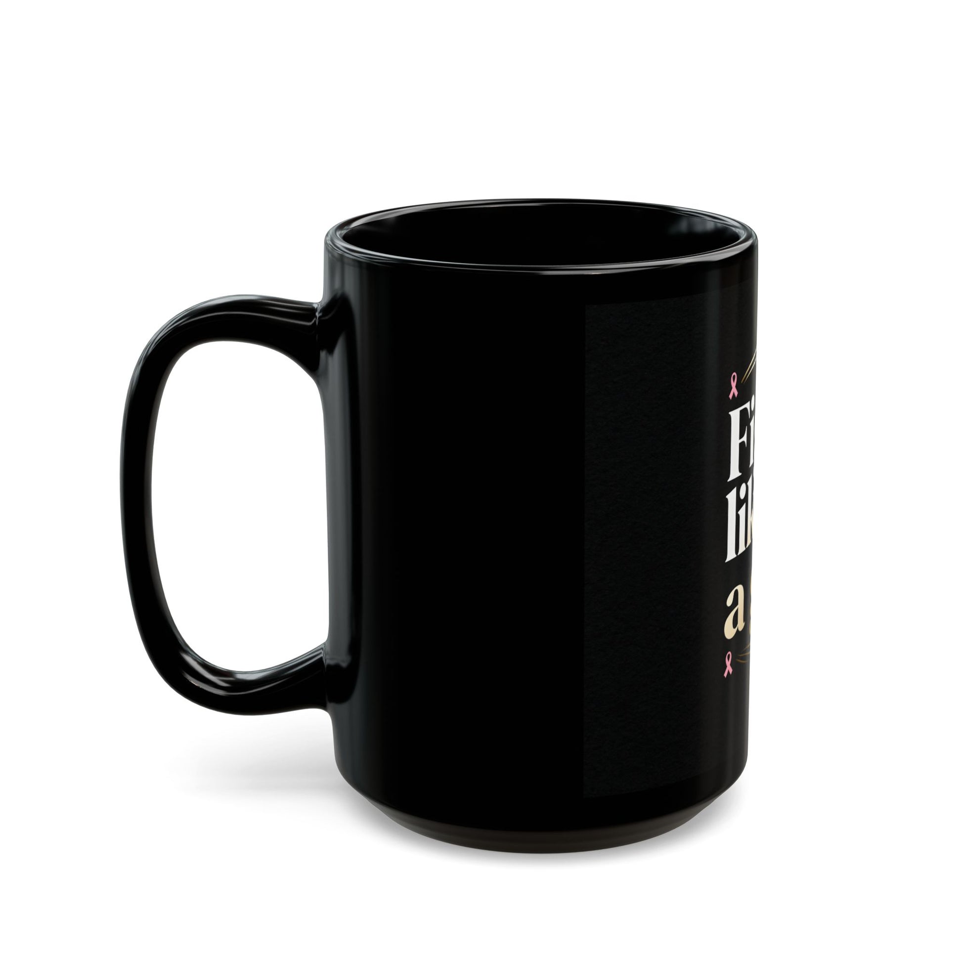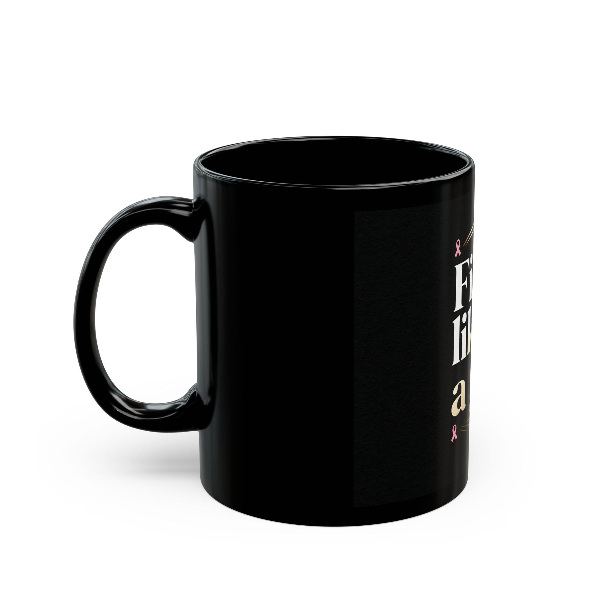 Embrace your inner strength with this stylish Black Mug. Perfect for coffee, tea, or any favorite beverage, this mug radiates empowerment and confidence. With a striking design that encourages resilience, it makes an ideal gift for friends and family who appreciate motivational phrases. Whether you're enjoying a quiet morning at home, gearing up for work, or celebrating a special occasion, this mug adds a touch of inspiration to your daily routine. Suitable for Breast Cancer Awareness Month and other personal triumphs, this mug is perfect for anyone who believes in fighting through challenges with grace and determination.