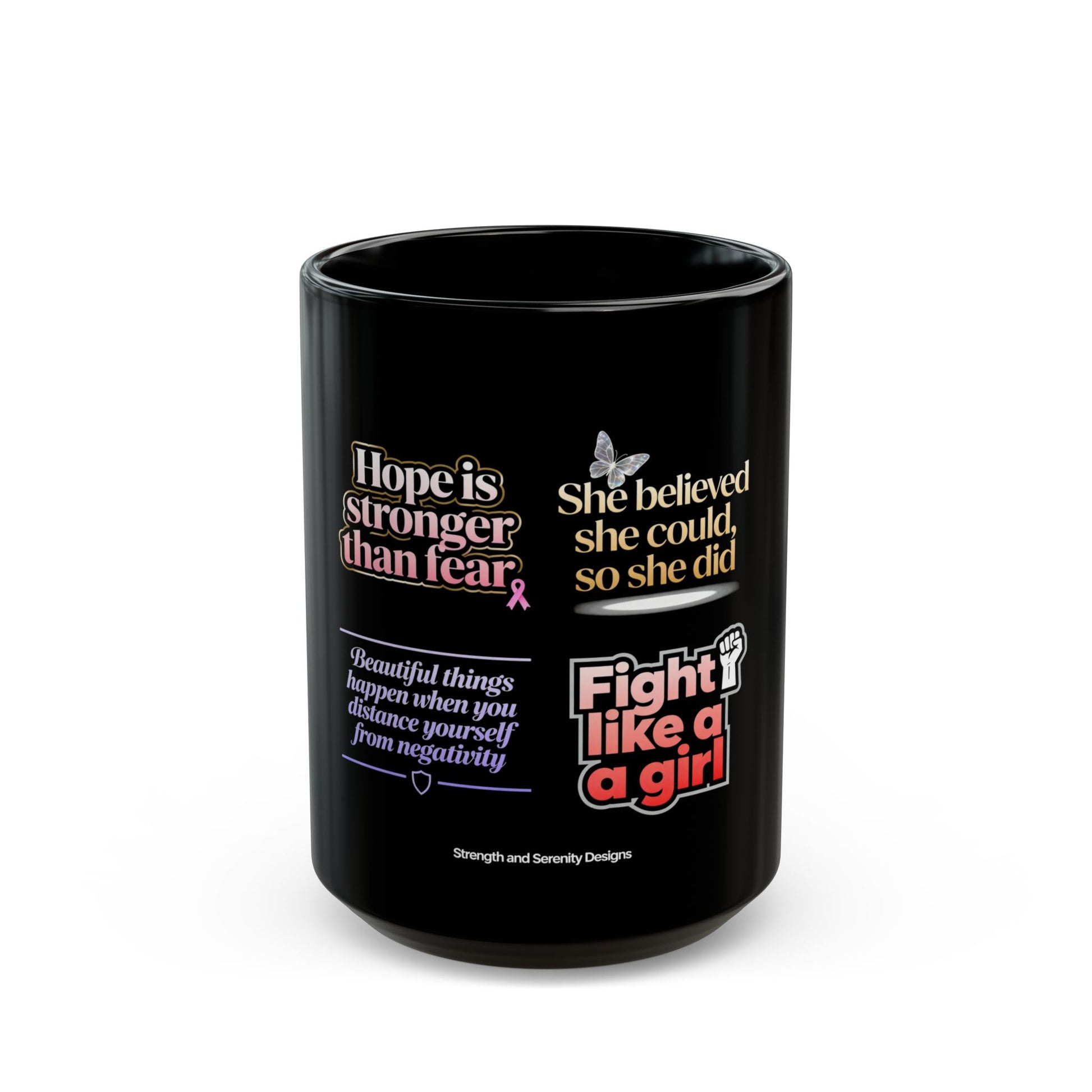 Brighten your morning routine with this stunning black mug that embodies strength and resilience. Crafted from glossy ceramic, it features vibrant designs that inspire and uplift. Perfect for your coffee, tea, or favorite beverage, this mug adds a dash of motivation to your day. Ideal for adults who appreciate empowering messages, it's a great gift for occasions like birthdays, graduations, or just to show support to a loved one. Make it a special surprise for International Women’s Day or any celebration of strength!