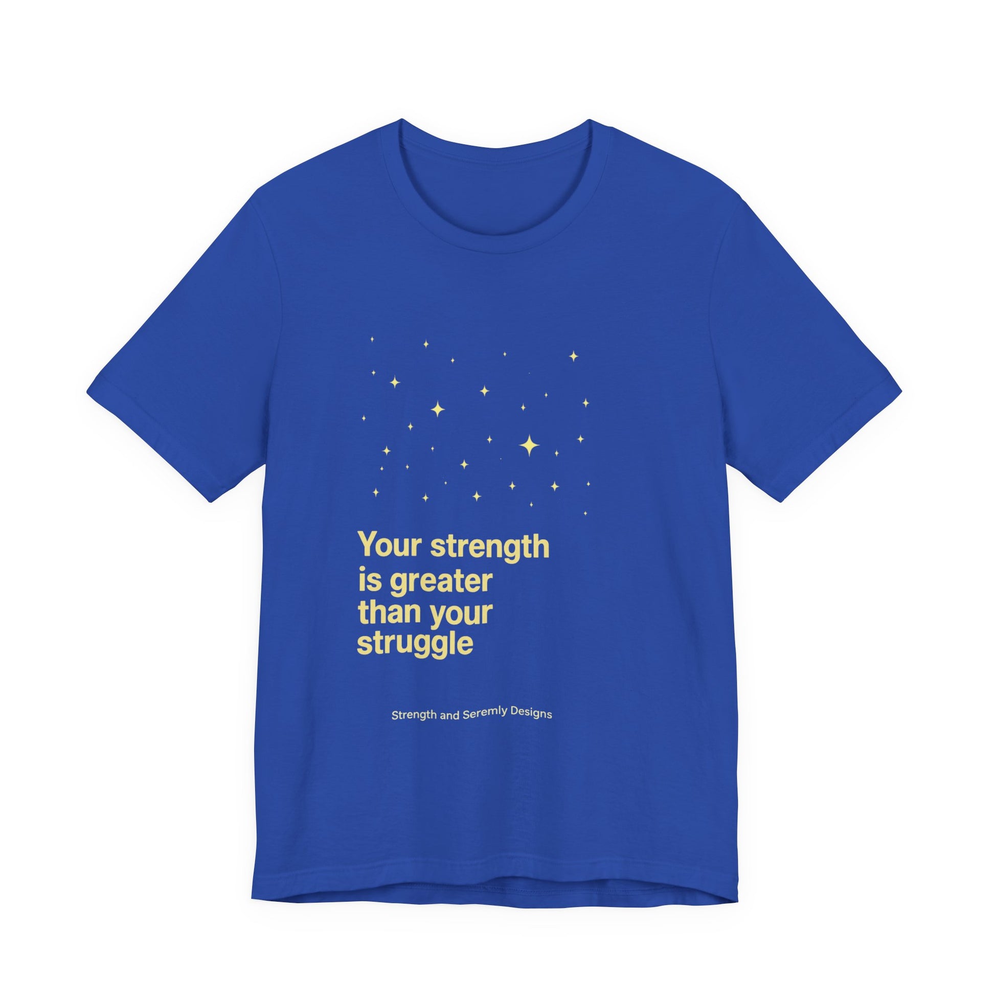 This Unisex Jersey Short Sleeve Tee exudes a positive vibe, making it the perfect addition to any wardrobe. With a motivational quote, it inspires strength and resilience, fitting effortlessly into both casual outings and relaxed social gatherings. Ideal for individuals who appreciate uplifting messages, this tee serves as a reminder of personal power. It's perfect for gifting on occasions like birthdays, self-care days, or any celebration of personal achievement. This versatile tee is also great for holidays focused on empowerment, such as Mental Health Awareness Month.